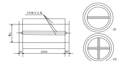 - 該消聲器為單腔結構,用金屬微穿孔板做抗性消聲元件、主要消中頻噪聲。